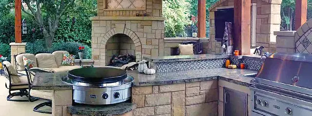 After you contact us, our landscape architect will come to your home to discuss with you what you want in your ideal outdoor living areas. Outdoor kitchens, dining areas, and living areas bring the entire party outside—even the host and hostess. So no one is stuck inside preparing the dinner while everyone else is outside enjoying the conversation and sunshine.