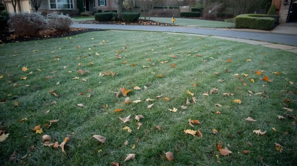 As part of your fall prep, it’s also important to keep your lawn clear of heavy leaf buildup. Mulched leaves can help enrich the soil, but leaving thick piles of leaves over winter can block sunlight and trap moisture—eventually suffocating and killing the grass beneath. Keeping your yard clean gives your newly seeded lawn the best chance to grow strong before the cold sets in.